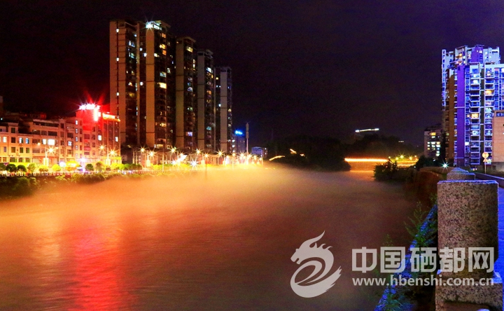6月28日晚,受气温影响,恩施城区清江河段的江面上出现层层薄雾,烟波浩渺,颇为壮观。放眼望去,仿佛整个城市都漂浮在云雾之中,如海市蜃楼。