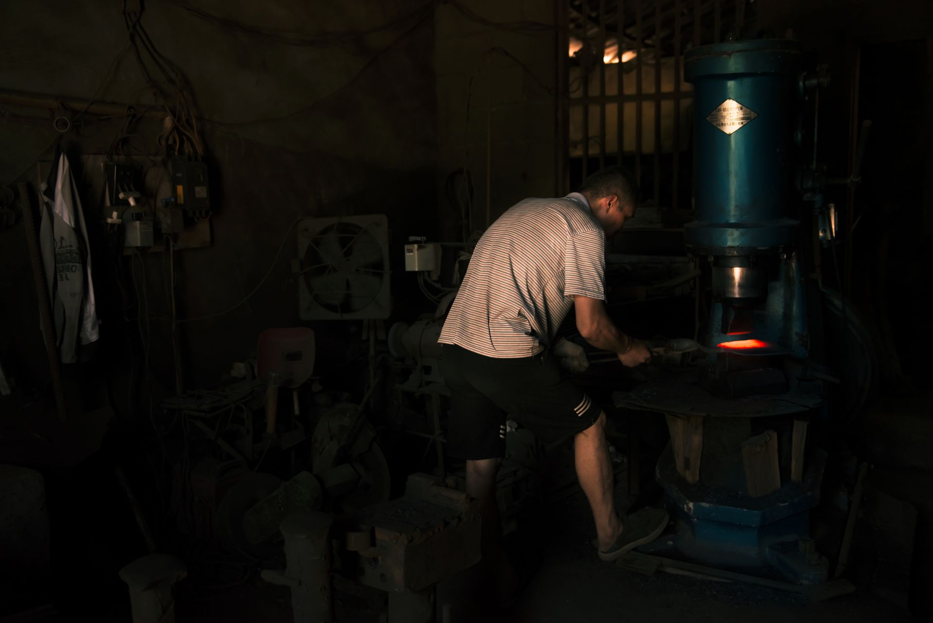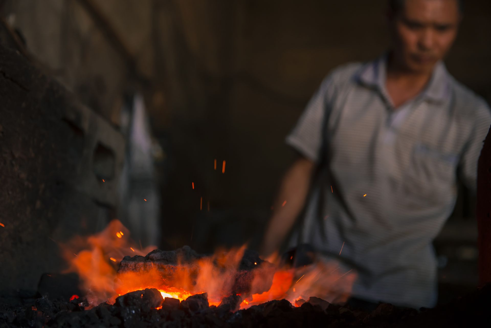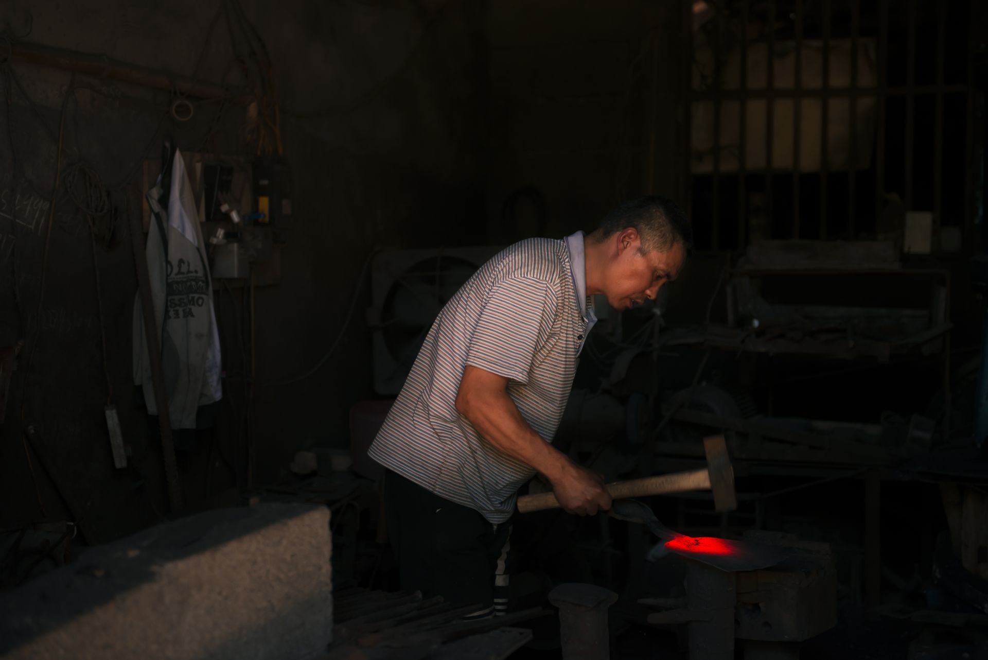 无论春夏秋冬,李正兵每天坚持打铁十几个小时。夏天太热,凌晨3点起床,干到上午10点多回家休息,下午4点钟接着干,直到晚上8点左右才回家。 到铁匠铺帮锤的赵燕龙师傅介绍:“打铁过程中,屋内温度很高,每个人都大汗淋漓,但丝毫不会影响我们打铁时的专注。打铁飞溅出来的铁花,衣服烧得大洞小洞,手指烫缩了……打铁大锤和小锤的配合至关重要,如果两个锤子产生碰撞,在力的作用下,小锤很容易把人砸伤。随着时代的变迁,过去的大锤有了空气机替代”。 李正兵说,打铁看似简单,实则不易。要打造出好的铁器,经验很重要,材料的可锻性,打铁的火候、起锻,打铁位置都有讲究。然而在经验丰富的老铁匠手中,坚硬的铁块也能如变戏法般地变得方、圆、长、扁、尖。 “打铁先要本事硬。”没有力气不能打铁,沉重的大锤轮番起落,需要的是气力和耐力。