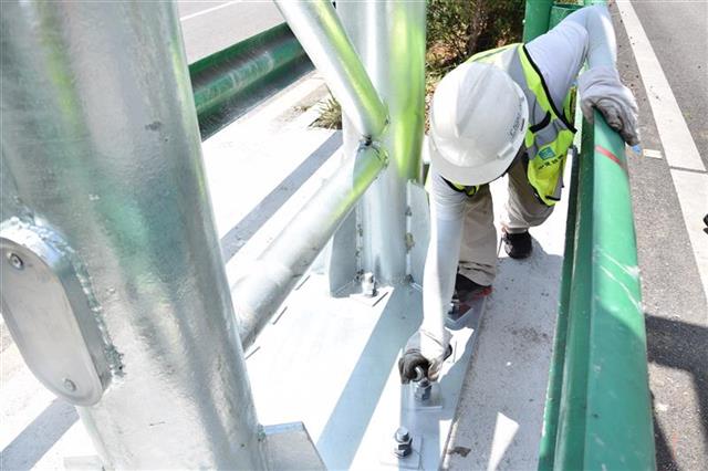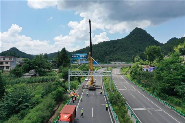 湖北日报讯(通讯员向文涛、蒋仕洲、记者刘宇)8月2日18时13分,位于恩黔高速(恩施-黔江)晓关收费站附近的ETC门架吊装完成最后一个环节——给门架和底座螺丝螺帽喷上锌渡漆,至此,该高速全路段10座ETC门架全部吊装完成,成为我省首条完成全路段ETC门架吊装的高速公路。