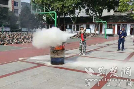 利川市消防大队走进利川市一中开展消防安全“进军训”活动。通讯员 供图