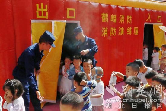鹤峰县消防大队在容美民族幼儿园开展了“消防安全知识讲座及模拟逃生演练”活动。通讯员 供图