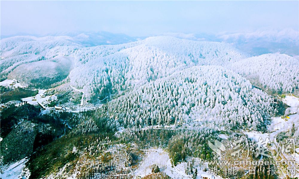荆楚网客户端-荆楚网消息(通讯员张世平)1月21日,在湖北省恩施土家族自治州建始县龙坪乡渣树坪村,银装素裹的长岭岗林海显现出绝美的雪景。