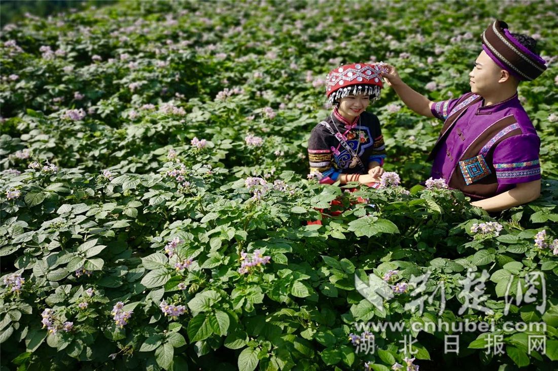 游客们穿梭在土豆花儿的海洋中流连忘返。(通讯员 伍功勋 摄)