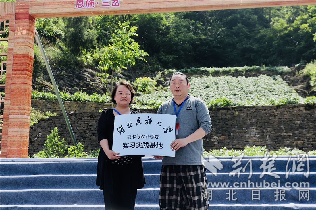 活动当天,湖北民族大学美术与设计学院实习实践基地揭牌。(记者 章巧慧 摄)