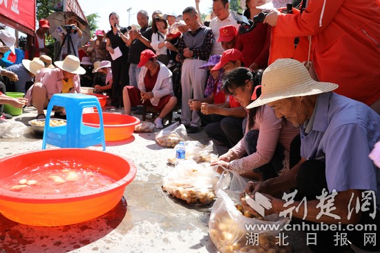 硒土豆是鹤峰村民传统种植农作物,一年四季必备食物,当然离不开刮皮这个基本技能。比赛中,参赛选手们神情专注,各尽所能,有的还“刮”出了节奏感,应着双脚的踏地声,嘴里哼着土家小调,现场一片欢声笑语。