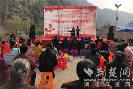 荆楚网客户端—荆楚网消息(通讯员 姚宗艳 )11月9日,在恩施市芭蕉侗族乡南河村大鱼龙易地扶贫搬迁集中安置点,一场别开生面的农民红歌大赛正热热闹闹地进行着,吸引着来自四面八方的老百姓前来驻足观看。