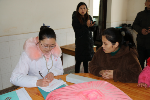 田镇卫生院医护人员为育龄妇女开展健康咨询服务。(洪峰 摄)