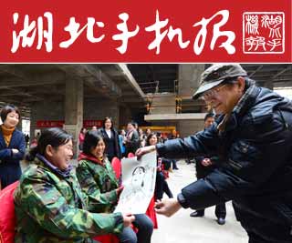 今天,十几位湖北画家来到建设中的武汉理工大学图书馆工地,为建设单位中建三局二公司的女职工们每人现场画了一幅肖像作品。画家们有的画素描、有的画漫画,用自己独特的画风为女建设者们送上节日礼物。(新华社)