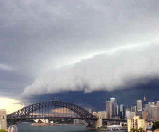 今日,巨型风暴云覆盖了澳大利亚悉尼上空,宛如巨浪袭来。悉尼气象局发布了雷暴警告。(中新网)
