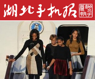 昨日,应中国国家主席习近平夫人彭丽媛邀请,美国总统奥巴马夫人米歇尔-奥巴马抵达北京,开始对中国进行为期7天的访问。除北京外,米歇尔一行还将访问西安和成都。米歇尔的母亲、两个女儿陪她一同访华。图为:米歇尔一行走下飞机。(新华网)