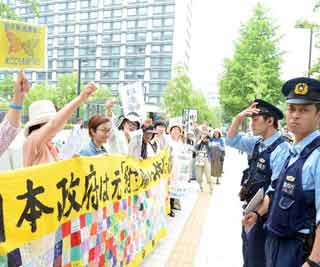 昨日,在日本东京,日本民众参加声援“慰安妇”示威。当日,来自中国、日本、韩国、菲律宾等国家和地区的声援团体在日本东京举行示威,要求日本政府正视历史,对“慰安妇”进行道歉和赔偿。(新华社)