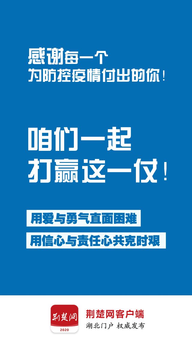 在这场严峻斗争中,武汉人民识大体、顾大局,不畏艰险、顽强不屈,自觉服从疫情防控大局需要,主动投身疫情防控斗争,作出了重大贡献,让全国全世界看到了武汉人民的坚韧不拔、高风亮节。正是因为有了武汉人民的牺牲和奉献,有了武汉人民的坚持和努力,才有了今天疫情防控的积极向好态势。武汉人民用自己的实际行动,展现了中国力量、中国精神,彰显了中华民族同舟共济、守望相助的家国情怀。武汉不愧为英雄的城市,武汉人民不愧为英雄的人民,必将通过打赢这次抗击新冠肺炎疫情斗争再次被载入史册!全党全国各族人民都为你们而感动、而赞叹!党和人民感谢武汉人民!
