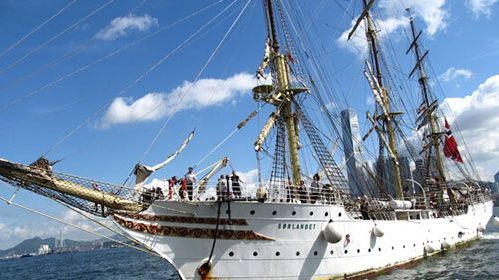 “S?rlandet”号,意指“南面的土地/城市“(发音为"sir-lan-da")。船长StureErichsen说:“‘S?rlandet’号是一艘全帆高桅船,曾为海军商船的海员提供训练,现时我们则首次于环球之旅让高中学生参与旅程,教导他们成为世界公民,了解所身处的世界、了解他们自己,且学习其他科目如数学、微积分、物理、历史、普通话、英文。”“S?rlandet”号从挪威展开她的环球之旅,曾到西班牙、摩洛哥,航经加勒比海及南太平洋,到达印度尼西亚泗水。随即再由新加坡驶往香港,作为这个学年的最后一站,船只稍后将会返回家乡挪威。