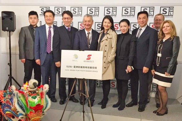 在开幕式上,IUIA秘书长孙万松先生与香港沙龙电影董事长汪长禹先生共同为“IUIA-亚洲影视青年创客空间”揭幕。