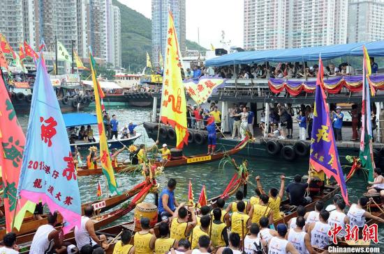 资料图:逾百年历史的香港仔龙舟竞渡大赛。