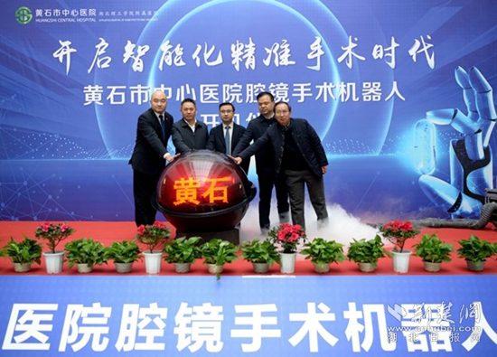 上午,黄石市中心医院腔镜手术机器人开机仪式在黄金山院区举行,黄石市卫生健康委主任严定方,中华医学会泌尿外科分会常委、武汉市医学会机器人与腔镜外科分会主委、武汉同济医院泌尿外科主任王少刚教授,黄石市中心医院院长袁明,黄石市中心医院外科主任夏国兵等与会嘉宾和专家共同按下“手术机器人技术开启智能化精准手术时代”的启动球,开启了黄石地区微创手术迈入机器人的新时代。开机仪式上,黄石市中心医院黄金山院区还被授牌为“手术机器人培训基地”。