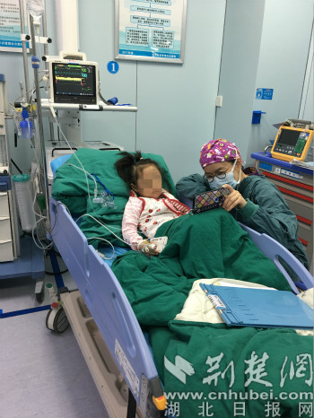 荆楚网客户端—荆楚网消息(通讯员史威韡)刚做完手术的桐桐(化名)需要留在手术室观察,因不能见到父母,变得烦躁起来。医生举着手机播放《小猪佩奇》安抚,直到患儿度过观察期。这是10月25日,发生在武汉市普仁医院的一幕。