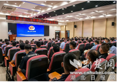 京山市副市长、公安局党委书记、局长黄华军出席并讲话,局党委副书记、政委宋学军主持。全体局党委班子成员、局直机关部分民警、新警代表以及获得荣誉纪念章的民警代表共110余人在主会场参加颁发仪式,交警大队、基层派出所共150余人通过视频连线在分会场参加仪式。