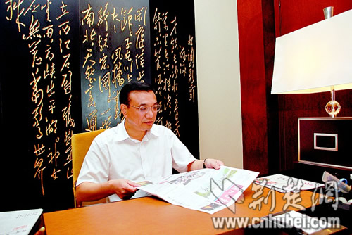图为:李克强在我省考察期间,在下榻的东湖宾馆阅览湖北日报。 (武勇 摄)