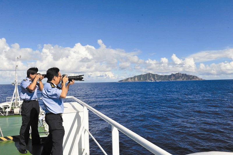 图为:中国海监船舶编队14日抵达钓鱼岛海域开展维权巡航执法 新华社发