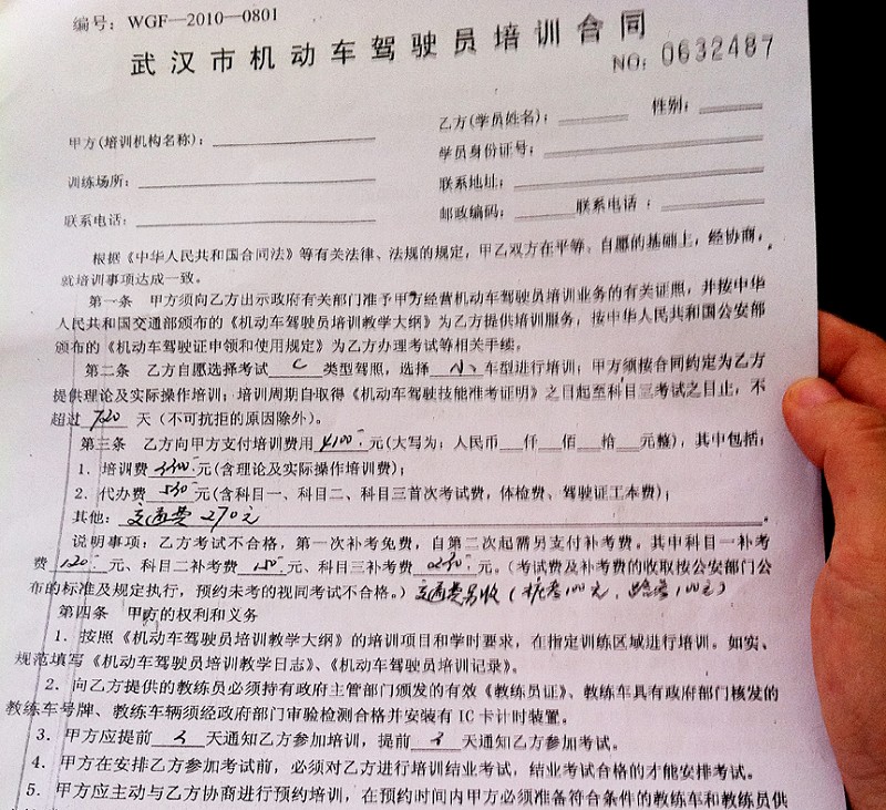 “这是我们驾校根据新规拟定的合同,明码标价,绝不另外收费。”他透露,驾校之前还有个VIP班,收费4900元,这个包含了3个科目补考一次的费用,但出台了收费指导价后,这个班就不收学员了。