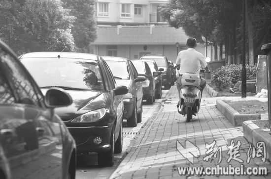 图为:汉口一小区内,车行道上停满车辆 (记者曹大鹏摄)