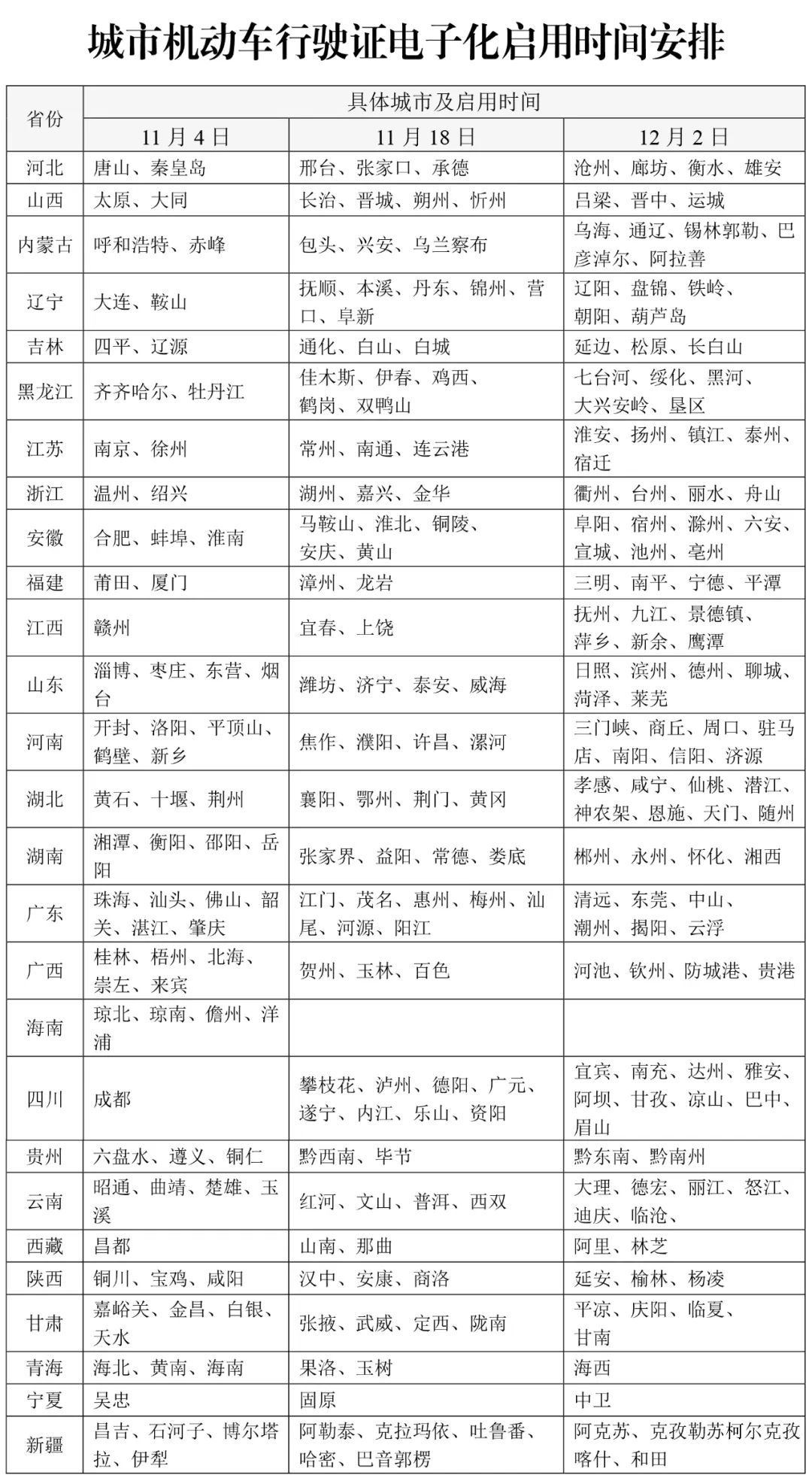 近日,为进一步扩大改革惠及面,公安部部署自11月4日至12月2日在全国分三批全面推广应用机动车行驶证电子化。车主可以对照本地启用时间安排,通过全国统一的“交管12123”App申领电子行驶证。