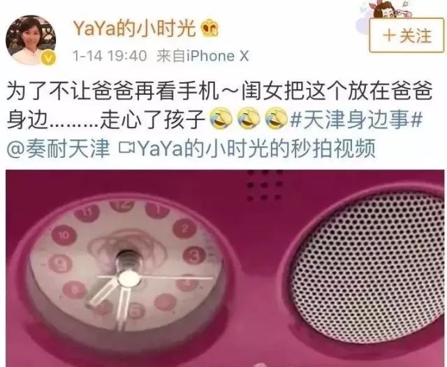 而闹钟不断的重复播放着“爸爸,请你不要再看手机啦”“爸爸,请你不要再看手机啦”。