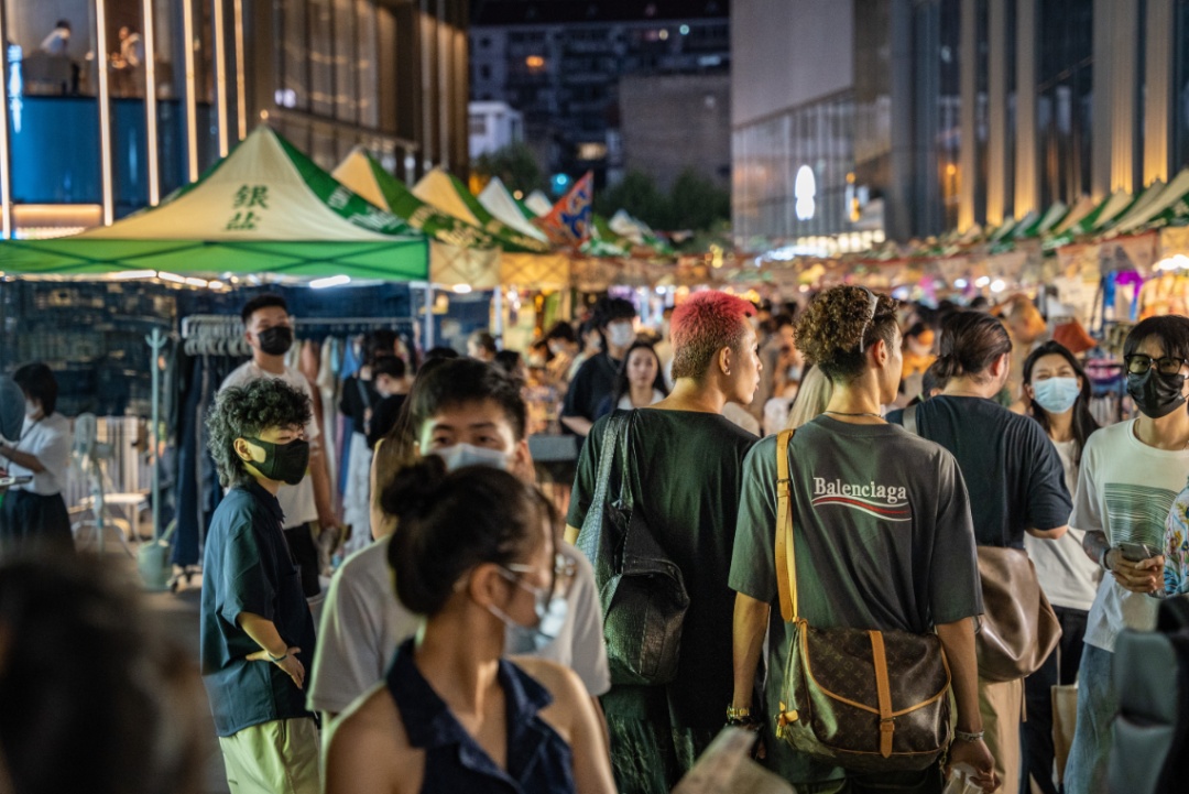 夏夜逛武汉万象城潮流市集的年轻人。资料图