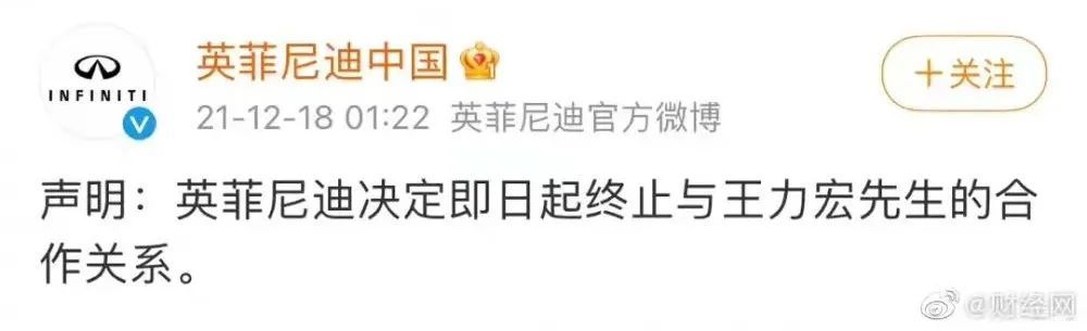 据此前报道,英菲尼迪曾官宣王力宏为代言人,后续仅过去35小时就终止合同。
