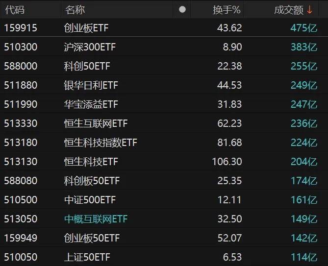 其中,华泰柏瑞沪深300ETF成交额为383亿元;华夏科创50ETF20%涨停,成交额为255亿元,均创下历史新高。