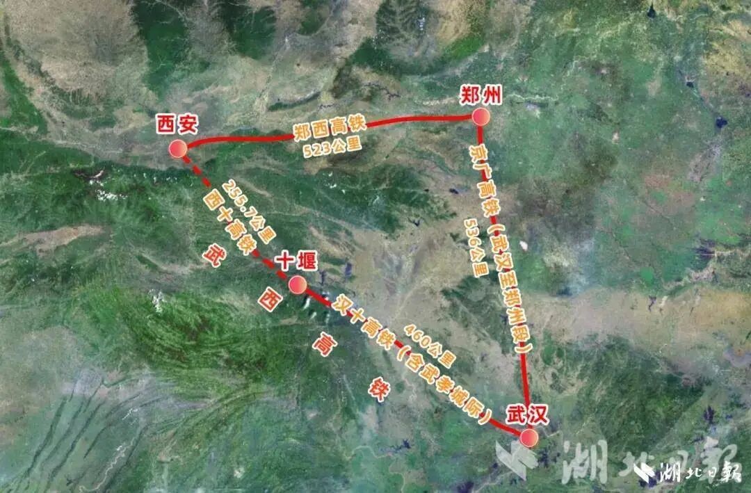 西十高铁西起西安,终点为十堰,新建正线长255.7公里,接入已建成的武汉至十堰高铁(全长460公里),设计时速为350公里。开通运行后,西安至武汉将不再绕道郑州,铁路运行时间由此前的5小时缩短至2.5小时左右。