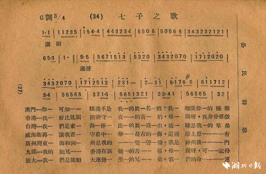 这并非1999年澳门回归时传遍神州的版本,而是1926年的《七子之歌》首版曲谱。在尘封一个世纪后,首版原谱终于被修复,此番得以再度唱响。