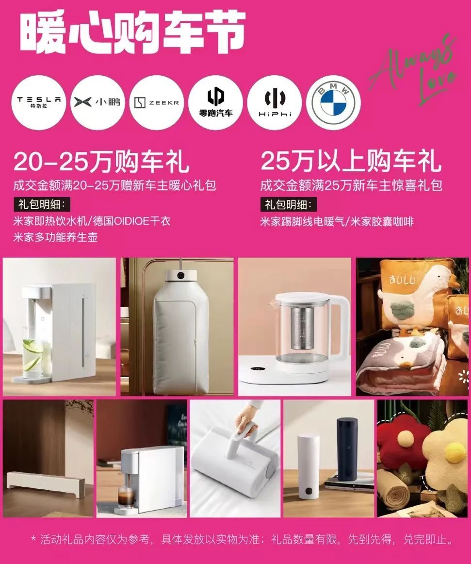 年末,如果刚好你有换新车的计划,米家踢脚线电暖气、米家胶囊咖啡机、米家即热饮水机、德国OIDIOE干衣机等,一大波冬日心选生活礼包,购车即送,绝对值得尖叫。