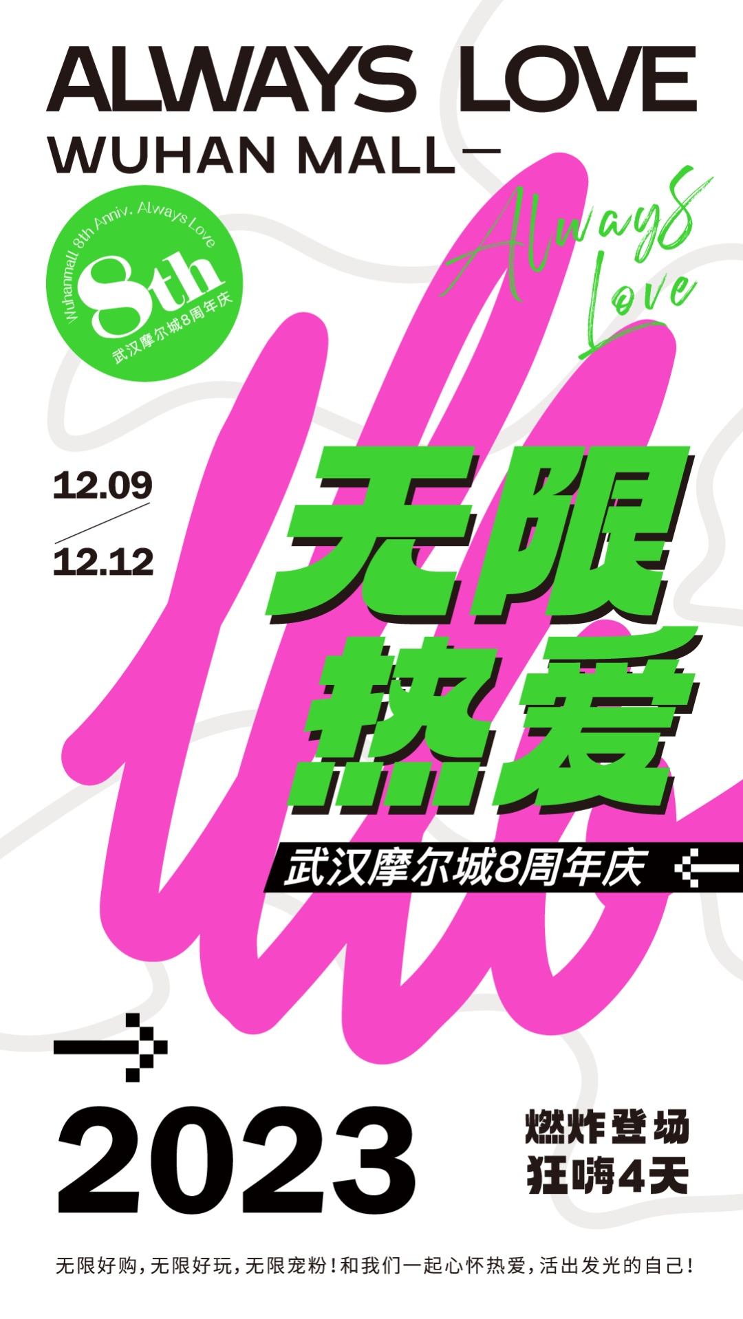 这个冬天,武汉摩尔城继续用“热爱”致敬城市。12月9日—12月12日,武汉摩尔城年度最大规模、最大力度、最值得期待的八周年庆如约而至。生生不息、无限循环,“8”周年庆线上线下强势联动,0元抽千份好礼、1元购现金券,从早到晚福利不断、边花边赚省钱畅购,更有唤醒冬日多巴胺的巨型蛋糕、音乐热舞等多重活动嗨翻全场。