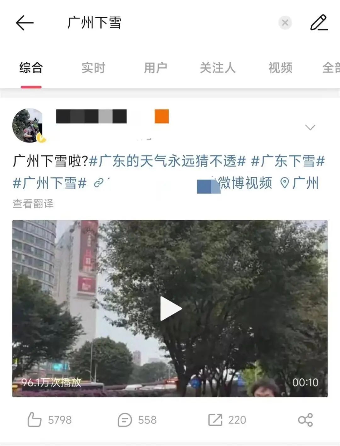 “广州下雪”登上热搜