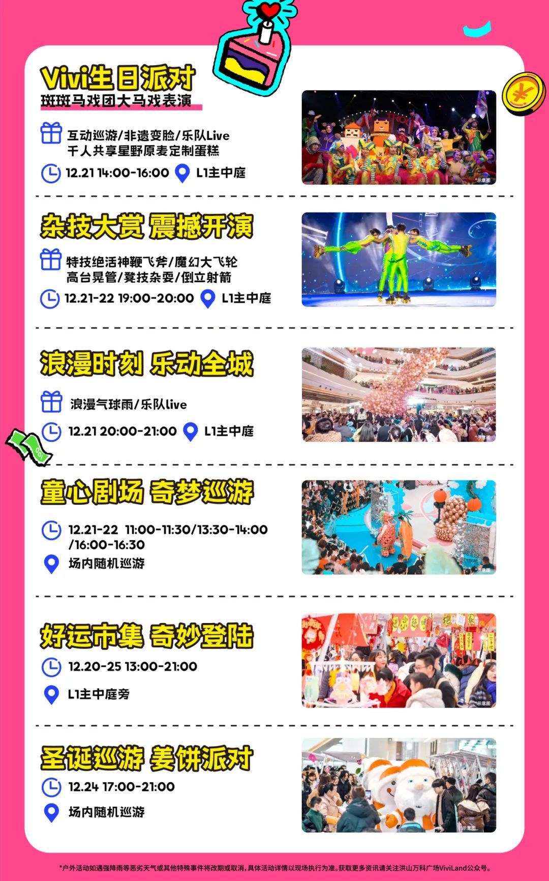 周年庆期间,火爆江城的斑斑马戏天团将魔力空降ViviLand,带来绮幻大马戏表演,小丑互动、泡泡秀、变脸表演等“硬控”小朋友的精彩节目。