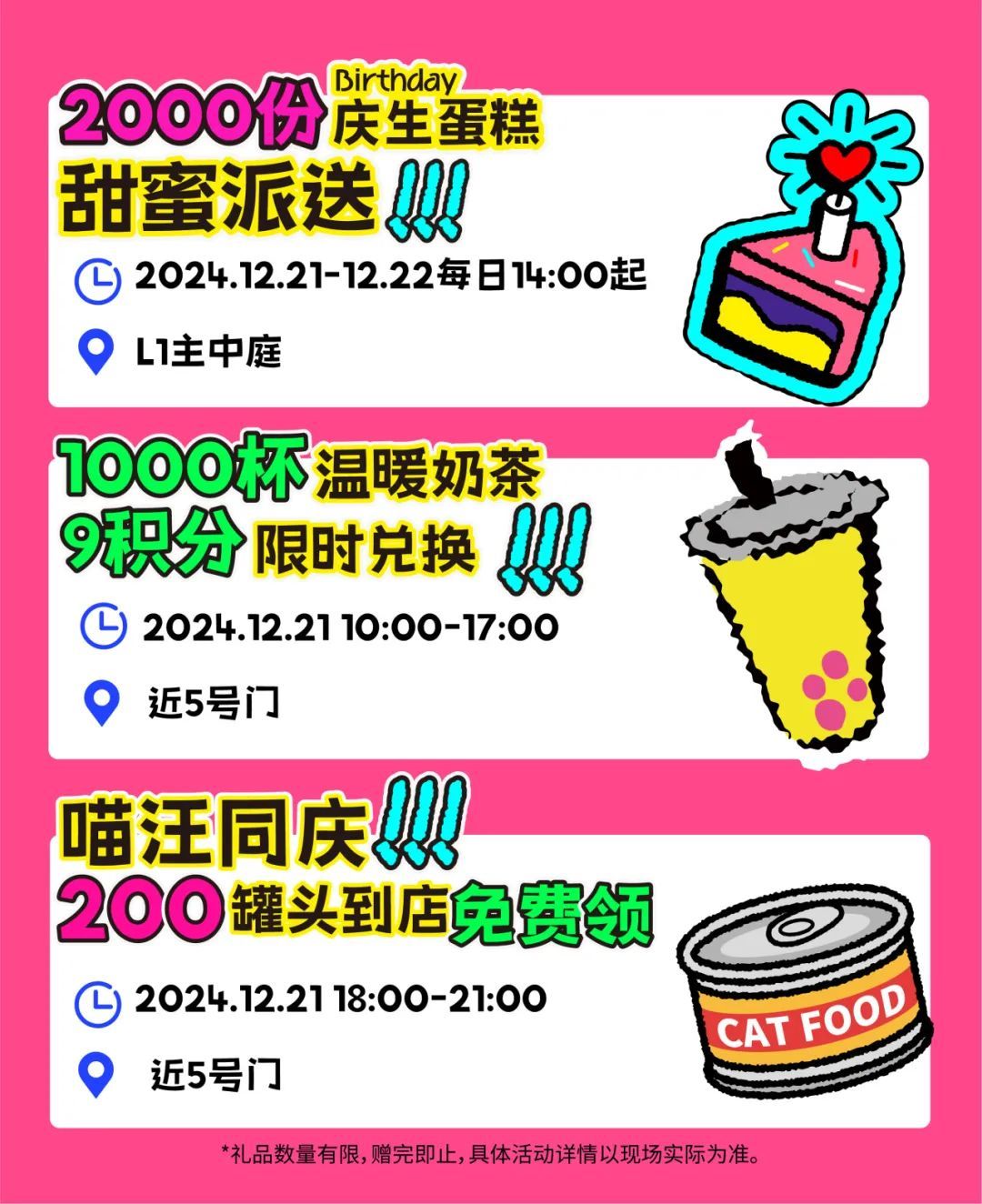 不仅有生日蛋糕免费送,还有冬至的第一杯奶茶9积分兑,作为宠物友好商场,这次更是邀请喵汪到店同庆,200个宠物罐头免费领,大家准备好接收这位老朋友的生日派对邀请了吗?