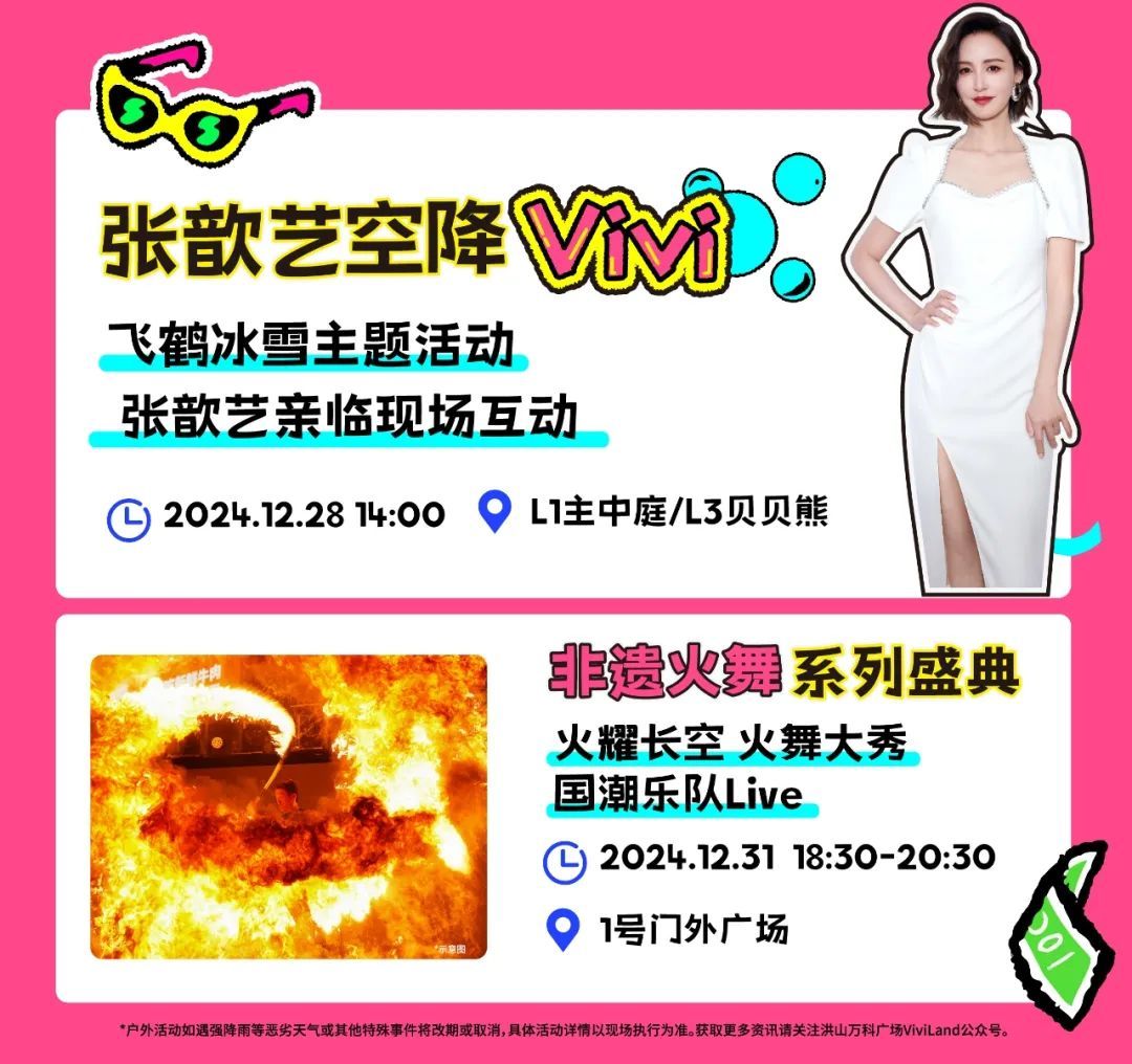 周年庆意犹未尽?剧透一下,这场盛大的年末狂欢持续精彩,12月28日知名女星张歆艺空降洪山万科广场,为狂欢增添“星光”,跨年夜还有非遗火舞盛典缔造绚烂焰火秀,火树银花不夜天,焰火升腾定格新年祝愿,年末不重样的缤纷活动一直带你嗨到跨年。