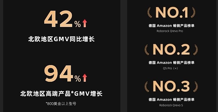 北欧地区以其高消费能力和对智能家居产品的强烈需求而著称。在这次黑五大促中,石头科技在北欧地区的表现同样令人瞩目。GMV同比增长42%,核心渠道市占率超过90%,高端产品GMV增长94%(800美金以上型号)。这些数据的背后,是石头科技在北欧地区持续投入、深耕细作的结果。石头科技凭借其高品质的产品和优质的服务,成功赢得了北欧消费者的青睐和信任。