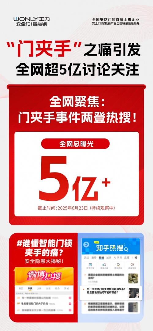 2025年5月,上海居民尤先生经历了一次意外伤害,清晨离家时右手三指被新安装的智能门锁夹伤,导致持续多日的红肿疼痛。无独有偶,浙江湖州徐先生家中的老人也遭遇了类似的智能门锁夹手事故。随着《消费日报》与《中国质量报》对事件的相继报道,社交媒体上很快形成“谁懂智能门锁夹手的痛”热议话题,相关讨论迅速在微博、知乎等平台登上热搜榜单,全网曝光量突破5亿次,引发网友对智能门锁使用安全问题的广泛关注。