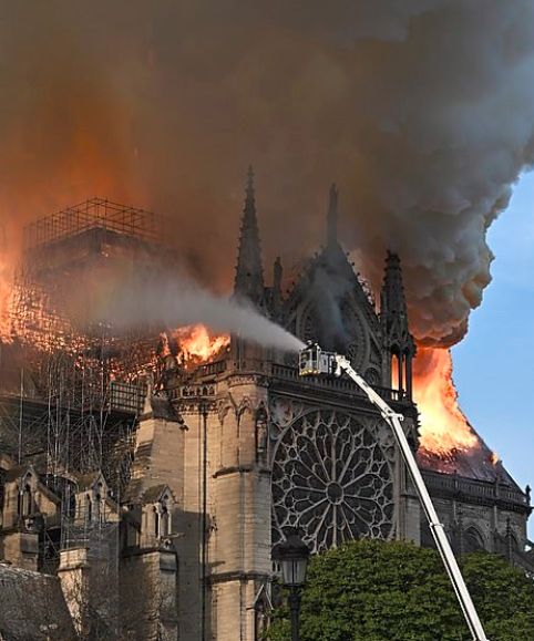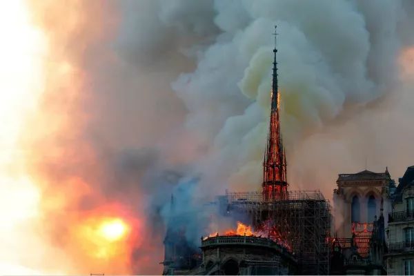 当地时间15日晚18时50分许,法国著名地标巴黎圣母院塔楼起火,塔尖于一小时后倒塌。
