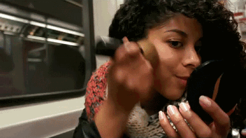 赶时间都快赶吐血了,包包里备好粉底唇膏睫毛膏眼线什么的,路上画呀。