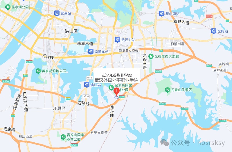 (三)武汉光谷职业学院(武汉外语外事职业学院):武汉市江夏区藏龙岛科技园栗庙路6号(两所学校在同一校区)
