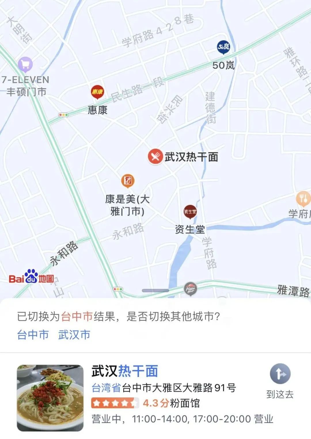 团团还在地图上找到了位于台中市的武汉热干面。