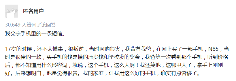 一个关于“父亲手机短信”的故事,得到了高赞。