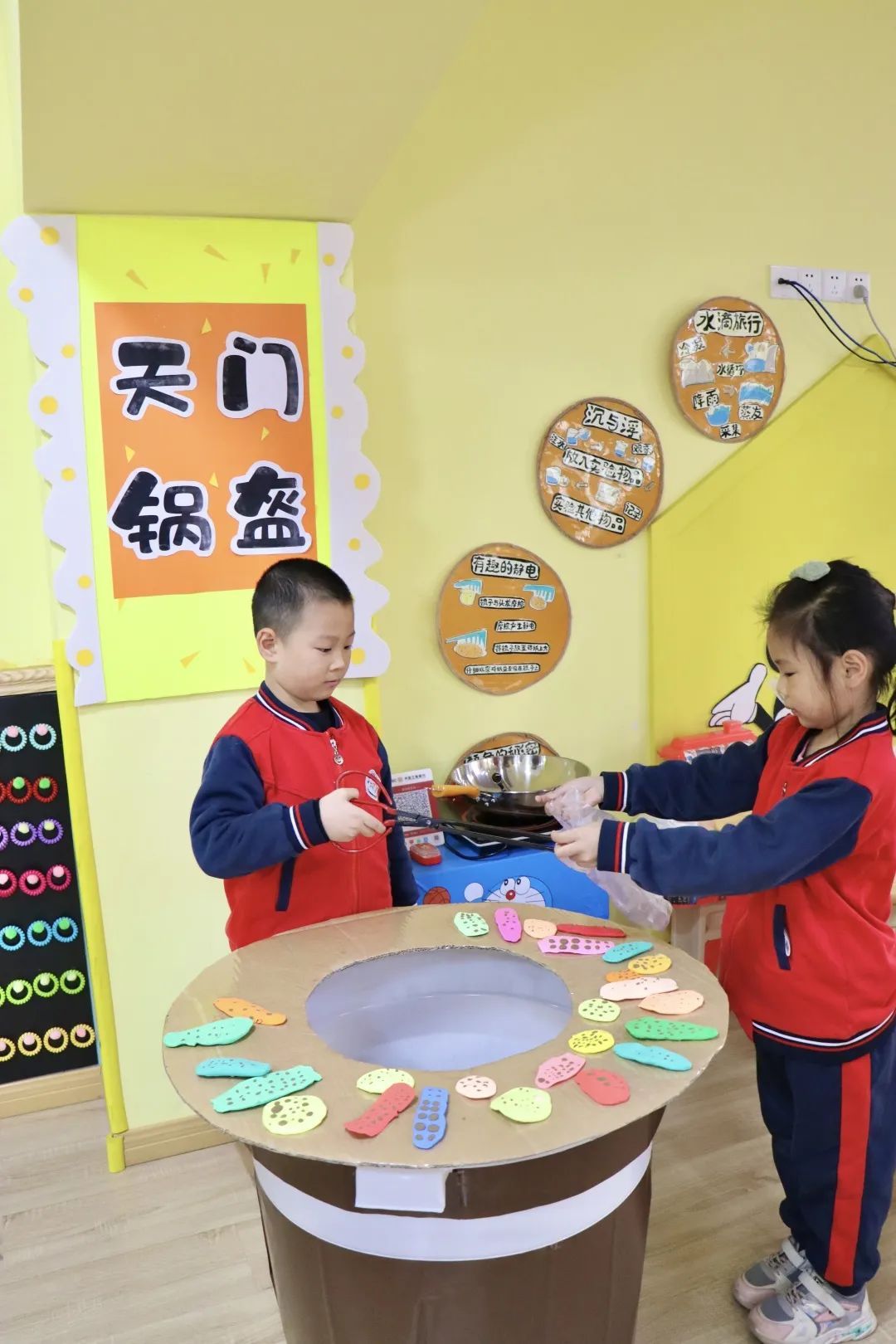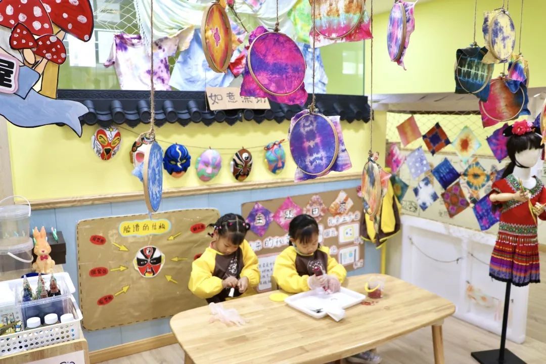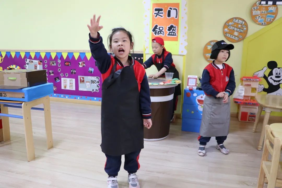各班区域主题各异、特色鲜明、创意十足,如富有童趣的牛奶工厂、淡雅别致的陆羽茶社、色彩斑斓的扎染坊、乡土特色的锅盔、糖塑,孩子们沉浸其中、不亦乐乎!