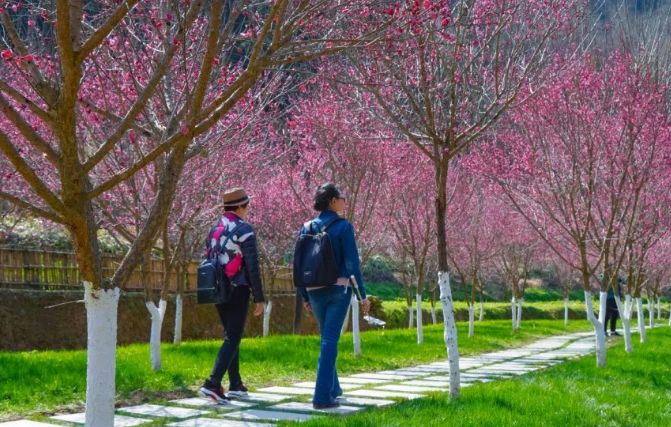 春日时光,太和梅花谷处处春光潋滟。穿梭在桃红绿柳之间,在曲径通幽的庭院回廊中踱步,竹林潇潇,溪流潺潺,感受春季舒爽的春风。