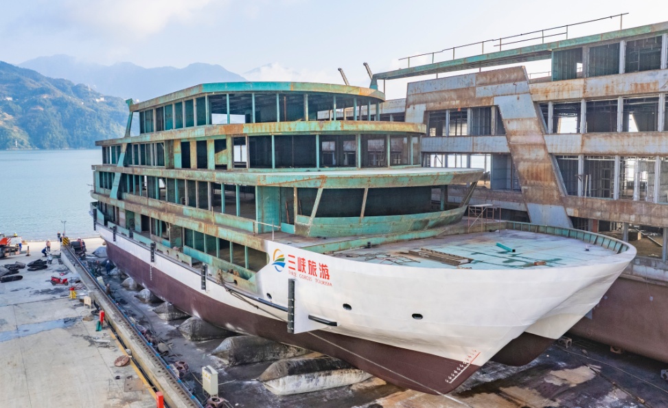 ■ 日前,西陵峡“和谐”号下水,标志着宜昌水上黄金旅游线路将再添一艘“绿色船舶”。“和谐”号预计于2024年春季正式投入西陵峡线路运营。