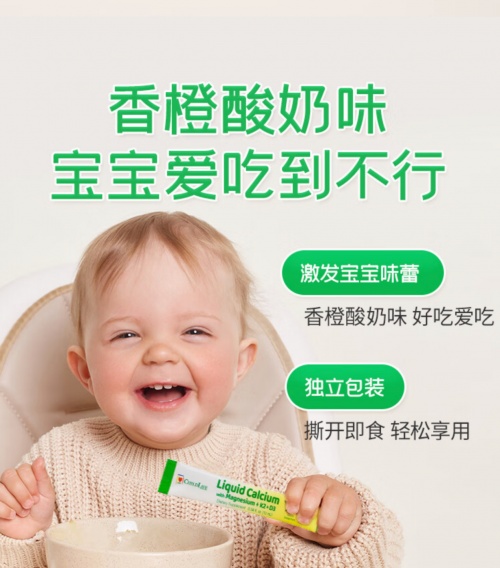 与传统补钙产品的味感较差不同,ChildLife小绿钙采用了经典的香橙酸奶口感。这是ChildLife小绿钙根据用户的实际反馈并对比挑选出的宝宝最喜欢的味道,酸酸甜甜的口感,酸奶般绵密,既能够满足孩子的味蕾需求,也让家长不再操心难喂食的问题。